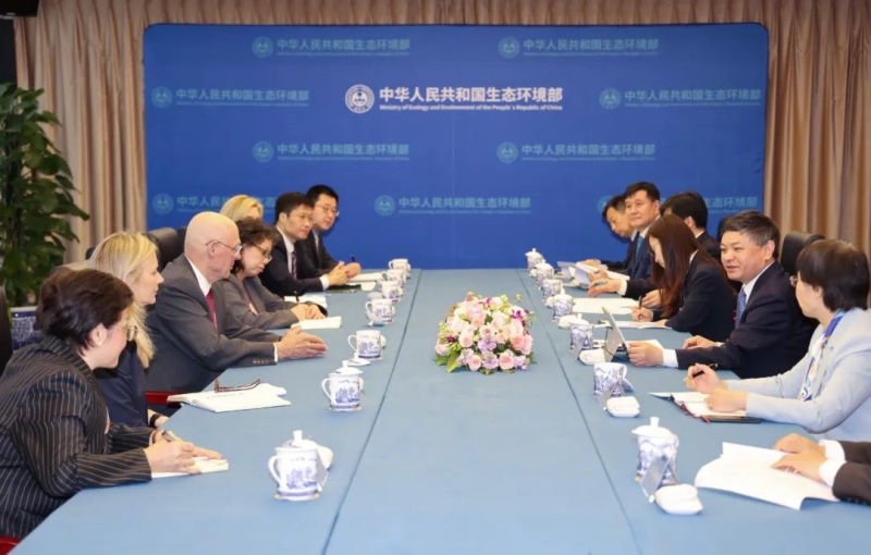 4月26日,生态环境部部长黄润秋在京会见美国前财政部长、保尔森基金会主席亨利·保尔森。双方围绕生物多样性保护、碳市场建设等议题进行深入交流。