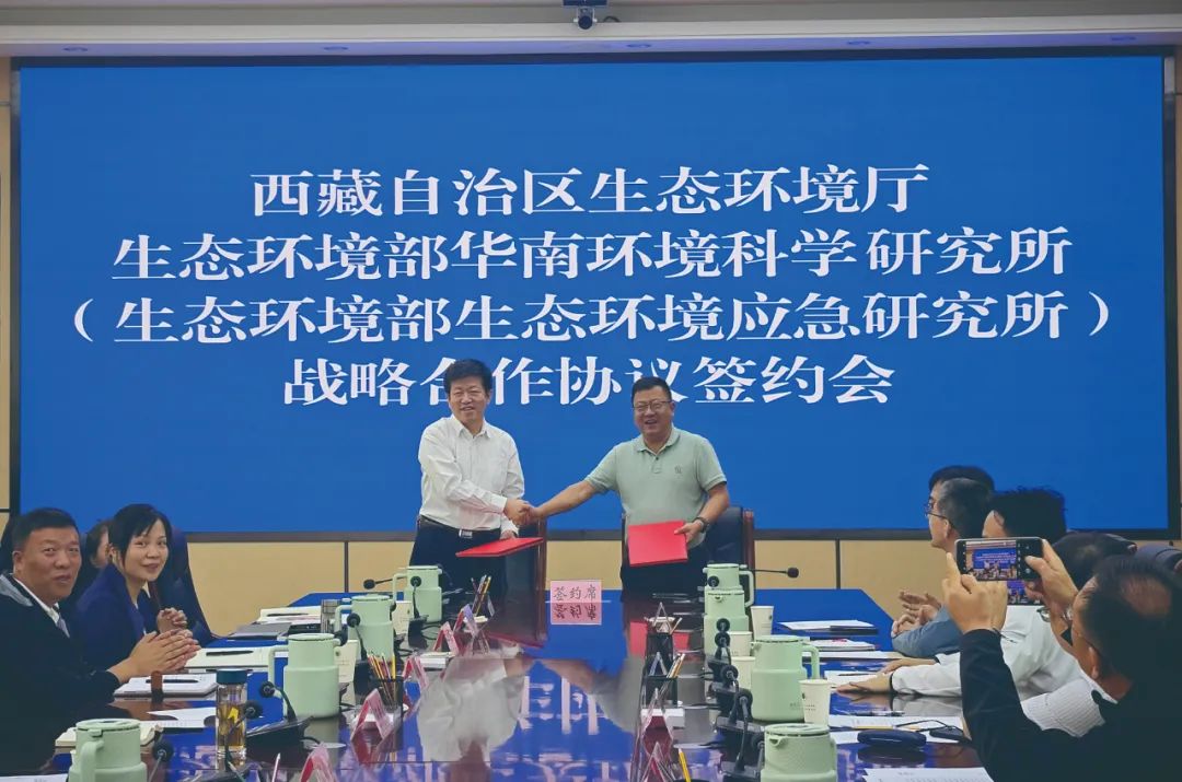 华南所(应急所)纪委书记邱劲,办公室、党委办公室(人事处)、计划财务处、科技管理处、修复中心相关人员参加签约仪式。西藏自治区生态环境厅办公室、相关业务处室有关同志参加签约仪式。