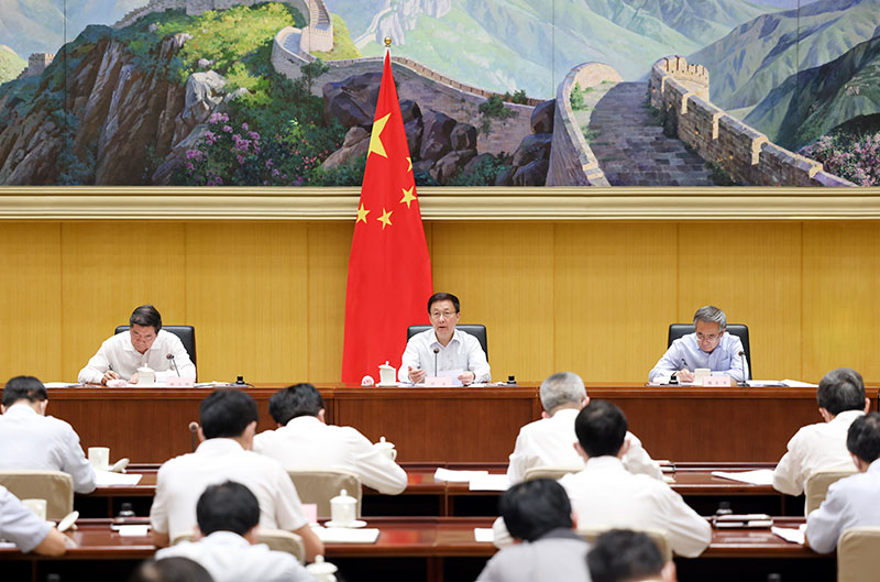 8月25日,中共中央政治局常委、国务院副总理、推进海南全面深化改革开放领导小组组长韩正在北京主持召开推进海南全面深化改革开放领导小组专题会议。新华社记者 丁海涛 摄