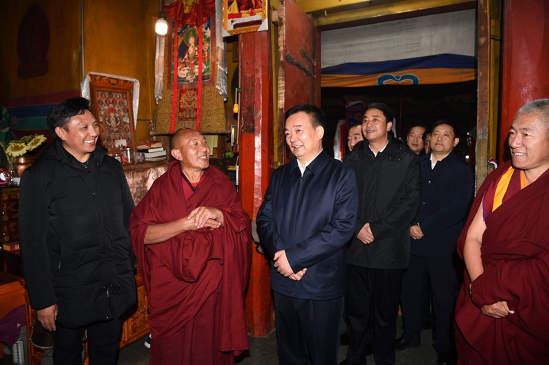 本网拉萨12月23日讯(记者 赵书彬 张黎黎)22日下午,自治区党委书记王君正来到哲蚌寺、色拉寺调研。他强调,要认真学习贯彻全国宗教工作会议特别是习近平总书记的重要讲话精神,全面贯彻党的宗教工作基本方针,坚持依法不断完善宗教事务治理体系,积极推进藏传佛教中国化,引导藏传佛教与社会主义社会相适应,与中国特色社会主义新时代相适应,凝聚起建设社会主义现代化新西藏的强大合力。