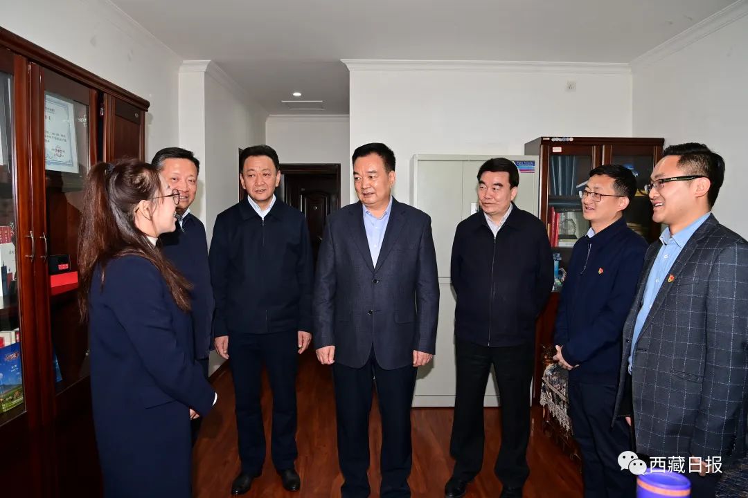2023年5月,自治区党委书记王君正来到自治区宣传文化系统调研。这是王君正看望慰问干部职工。记者 旦增西旦 摄