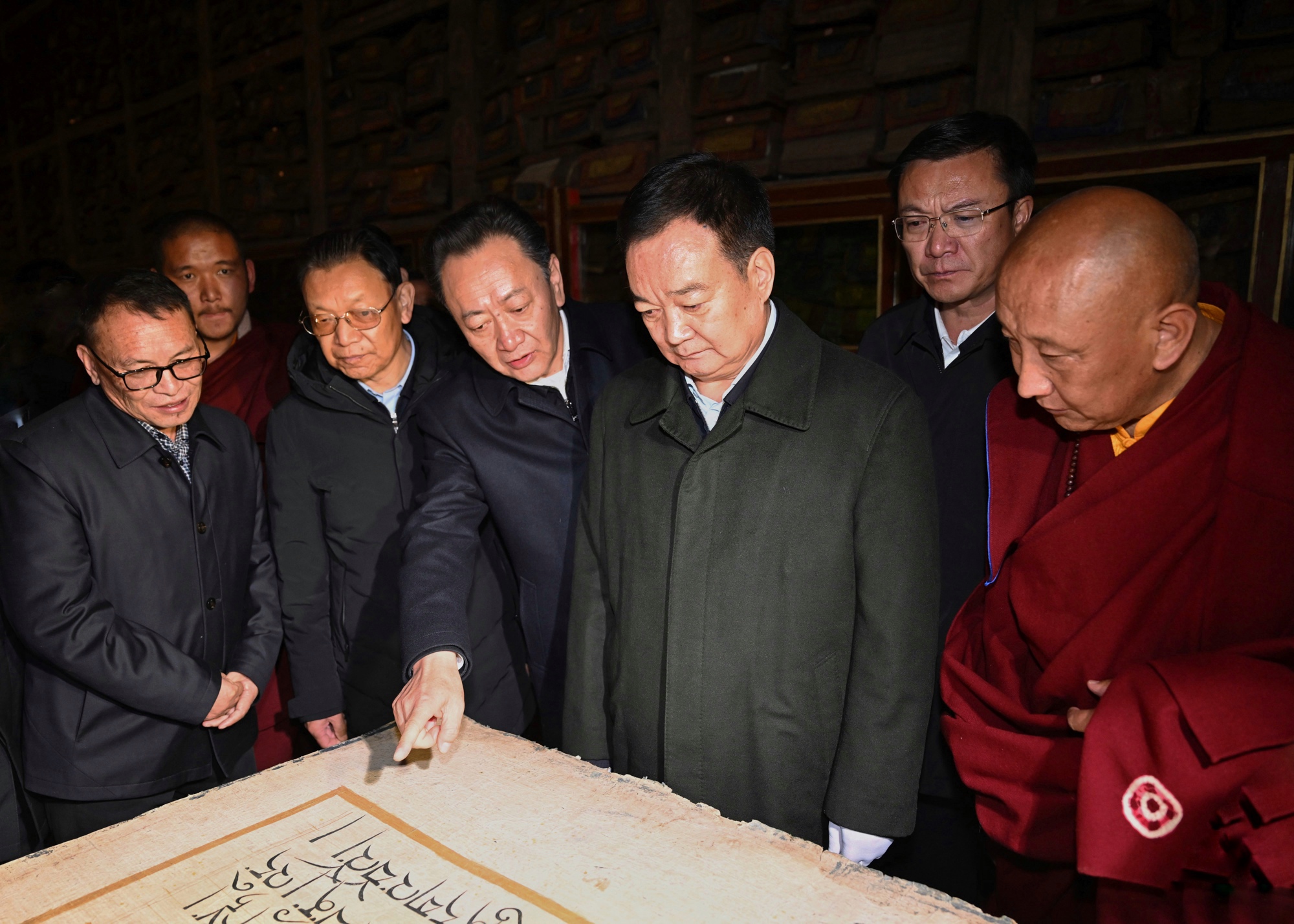 近日,自治区党委书记王君正在日喀则市调研宗教工作。这是王君正在萨迦寺与僧人亲切交流,详细了解寺庙历史、加强和创新寺庙管理、“三个意识”教育开展、文物保护等情况。记者 旦增西旦 摄